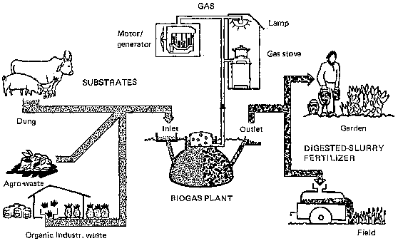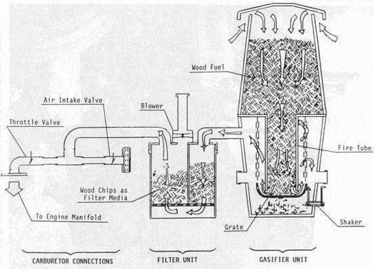 Both wood gas units and gas produced from human and animal waste can be used and implimented