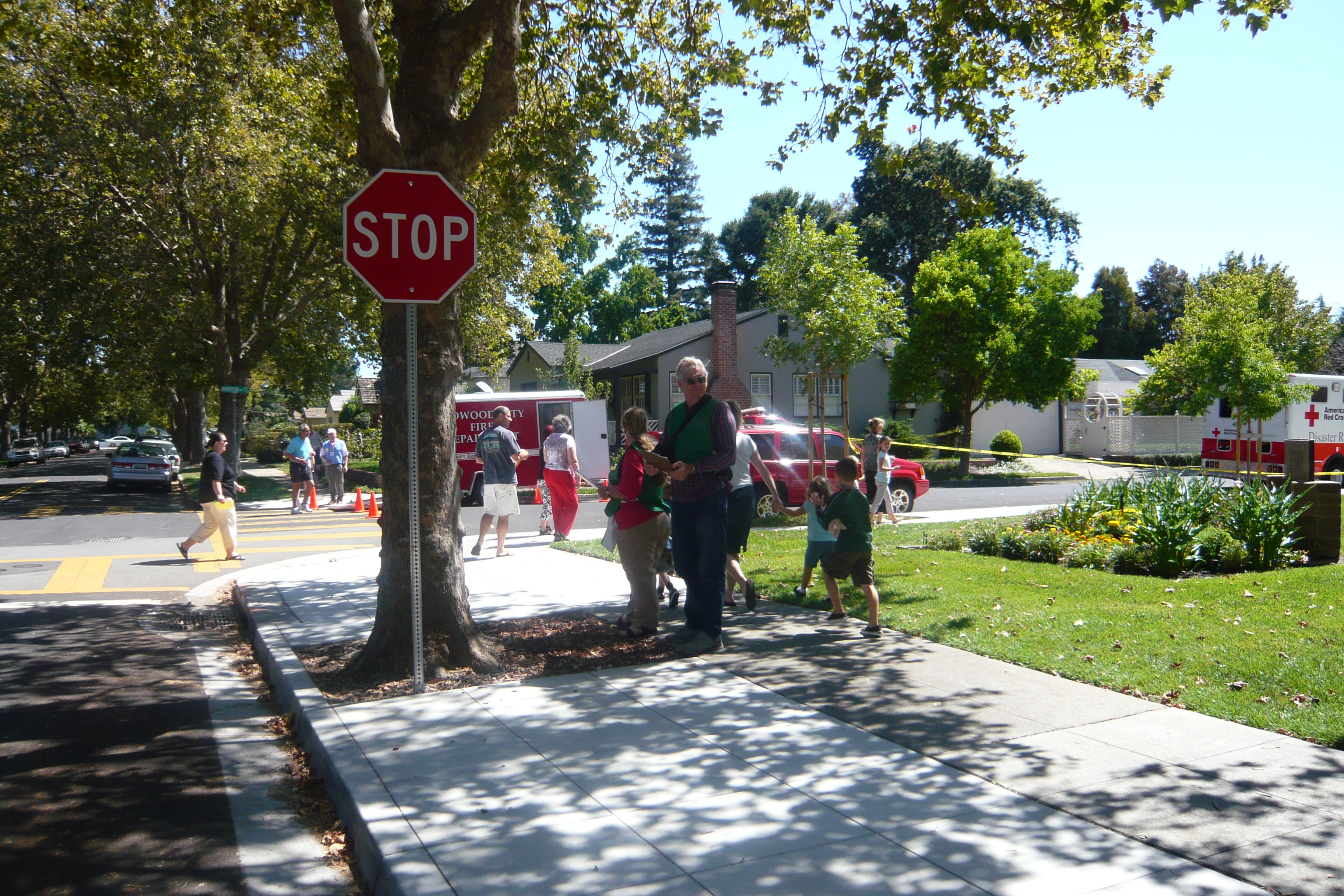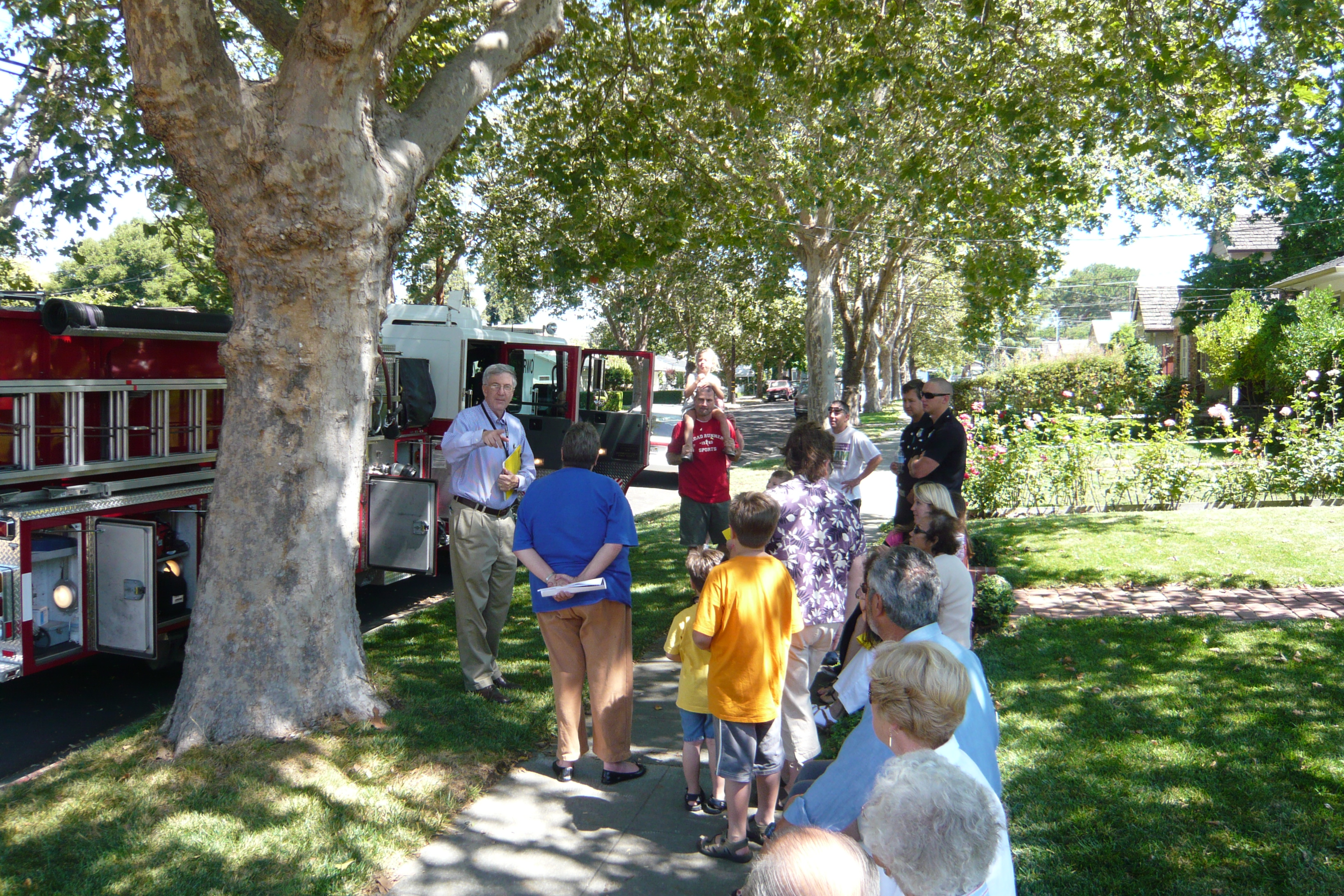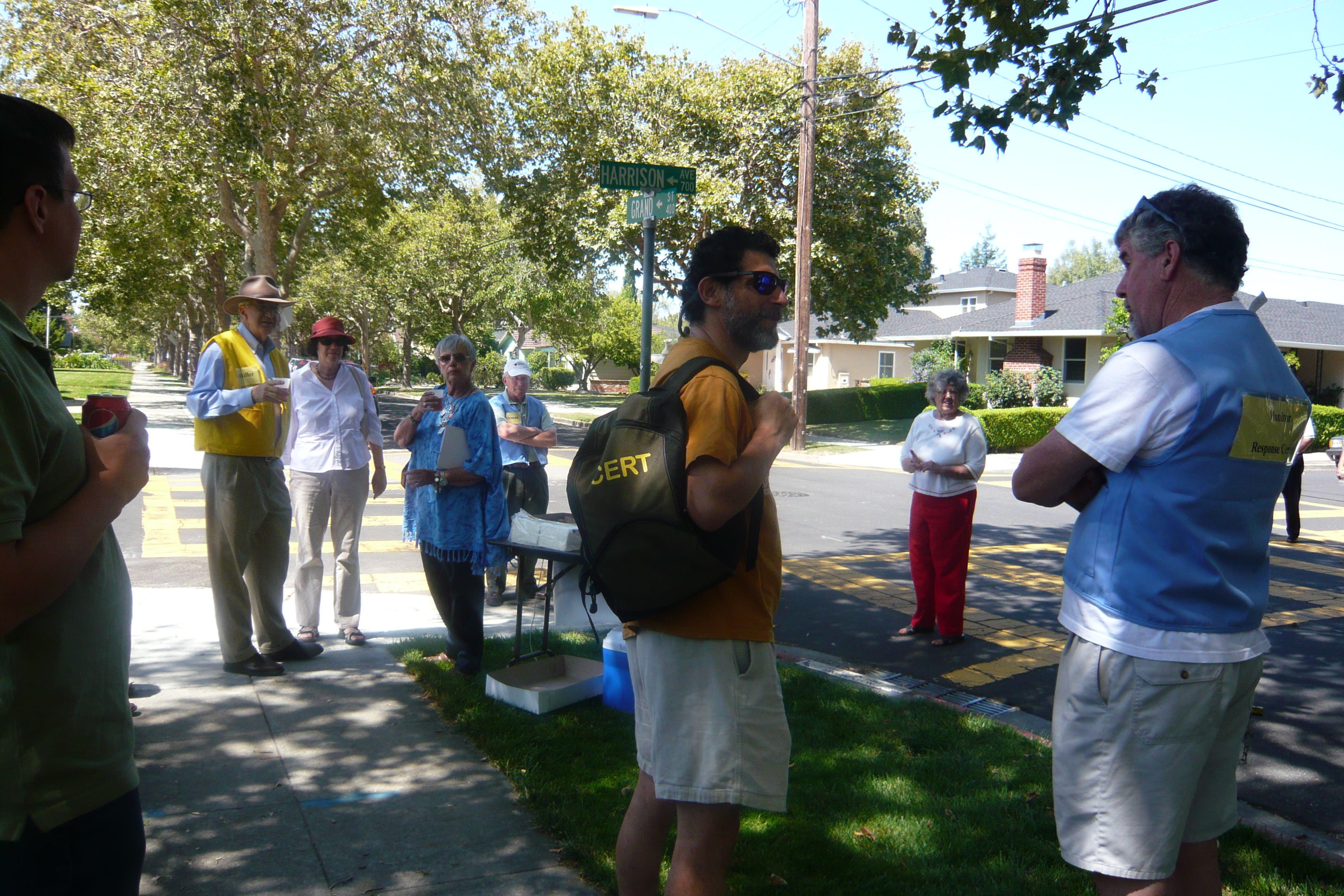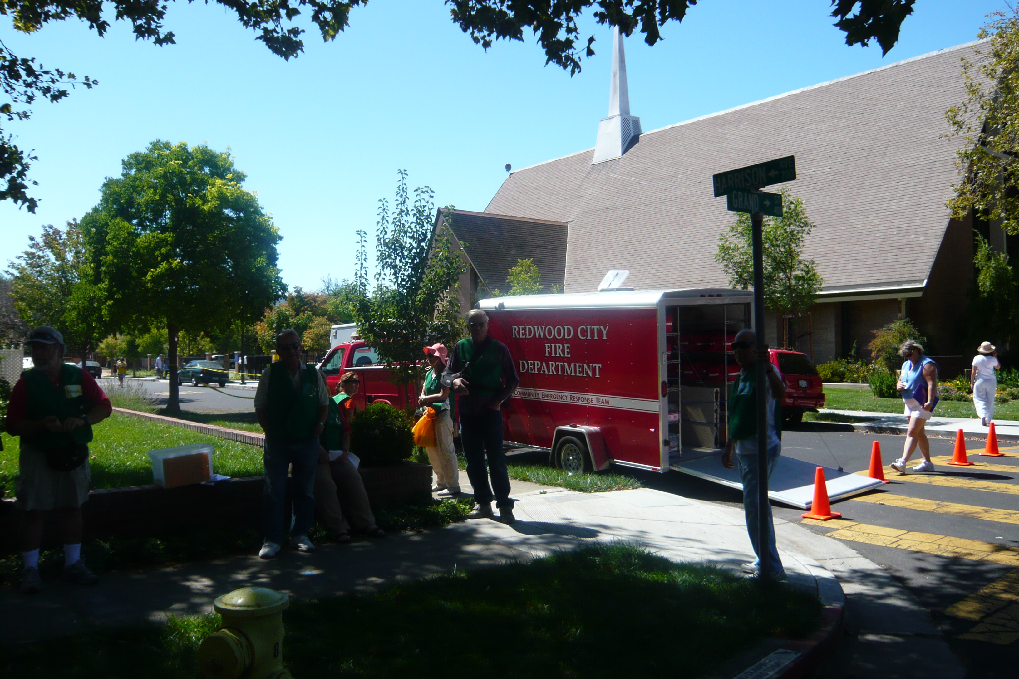 An additional key finding of the monitors came from watching the CERT person, who lives on that street, attempting to serve a total of 38 homes. This CERT person is well-trained and participates in regular CERT meetings. The scenarios provided a range of challenging situations. Observers noted how impossible it was for the CERT person to fulfill the expectation of evaluating the physical area and of recruiting individuals for needed tasks. This drill highlighted the limits of a ratio of CERT to home, which is significantly higher than 1 to 38 and not evenly geographically dispersed by neighborhoods. CERT individuals are being asked to engage vast neighborhoods where, in our society, individuals do not interact comfortably. This was confirmed by the “uncomfortable” nature of the initial encounters when the staff knocked on doors in the recruitment process. The staff was supported by an initial event on the street with a fire engine, offered by the Fire Chief, one of the many examples of the support contributed by the agency representatives assigned to the project by their agencies: OES, Red Cross, Police, Fire, and City Manager.